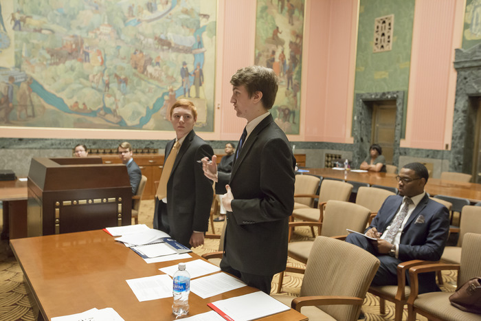 At the Moot Court State Competition, participating teams are evaluated on their performance during oral arguments and their written brief. During oral arguments, each Moot Court team will be randomly paired against another team. Each team will present oral arguments for both sides of the case, switching sides and opponents from one hearing to the next. Teams that cannot travel to Columbus, or that do not wish to present oral arguments, have the option to participate in the brief-only competition.
